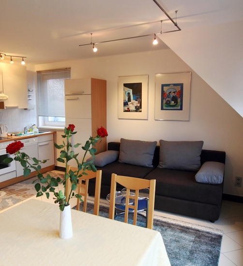 Die stilvoll eingerichtete Wohnung bietet Ihnen alles für einen erholsamen Urlaub. Ob in der geräumigen Küche oder im modernen Badezimmer, hier fühlt man sich einfach wohl. Darüber hinaus sind alle Geschäfte des täglichen Bedarfs bequem zu Fuß zu erreichen. (Auf dem Grundriss in grün gekennzeichnet)