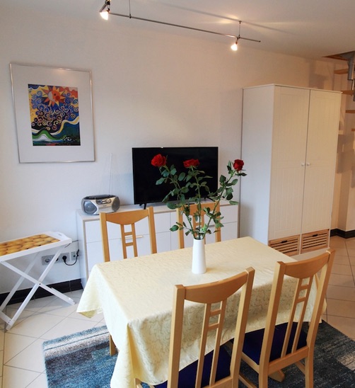 Die stilvoll eingerichtete Wohnung bietet Ihnen alles für einen erholsamen Urlaub. Ob in der geräumigen Küche oder im modernen Badezimmer, hier fühlt man sich einfach wohl. Darüber hinaus sind alle Geschäfte des täglichen Bedarfs bequem zu Fuß zu erreichen. (Auf dem Grundriss in blau gekennzeichnet)