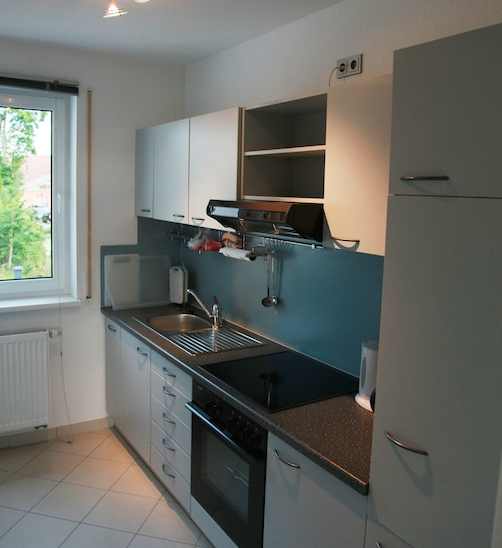 Die stilvoll eingerichtete Wohnung bietet Ihnen alles für einen erholsamen Urlaub. Ob in der geräumigen Küche oder im modernen Badezimmer, hier fühlt man sich einfach wohl. Darüber hinaus sind alle Geschäfte des täglichen Bedarfs bequem zu Fuß zu erreichen. (Auf dem Grundriss in blau gekennzeichnet)