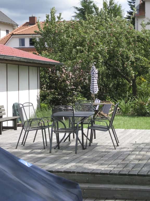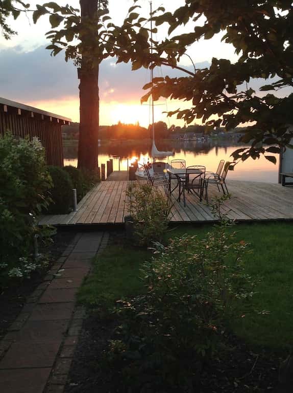 Unser Haus ist direkt am Mirower See gelegen und besitzt einen eigenen Badesteg mit Uferterasse und die Möglichkeit das eigene Boot hier fest zu machen.